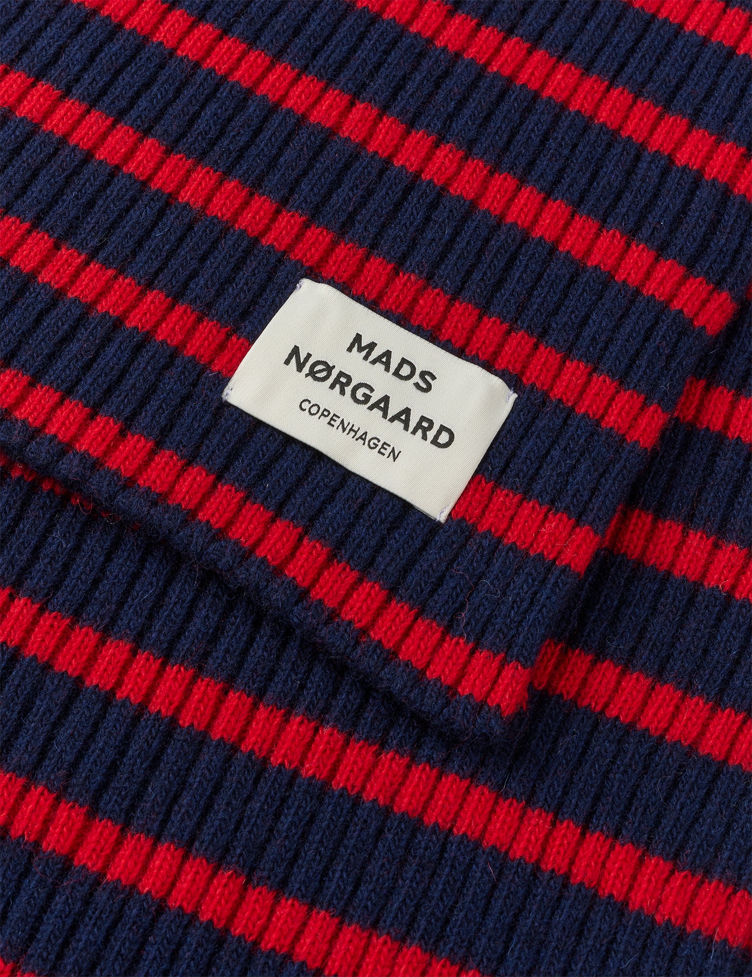 Ribstrikket, uldent og superblødt tørklæde med logolabel og striber.