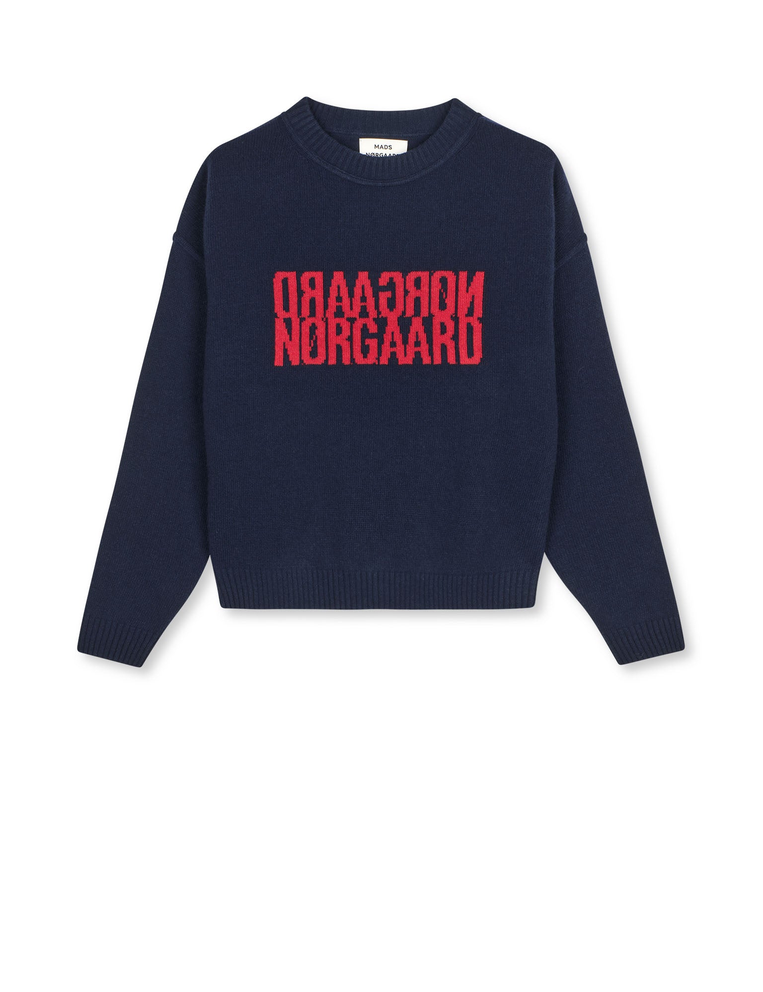 Blød, boxy og en anelse oversized striktrøje med stort, delvist spejlvendt istrikket logo.